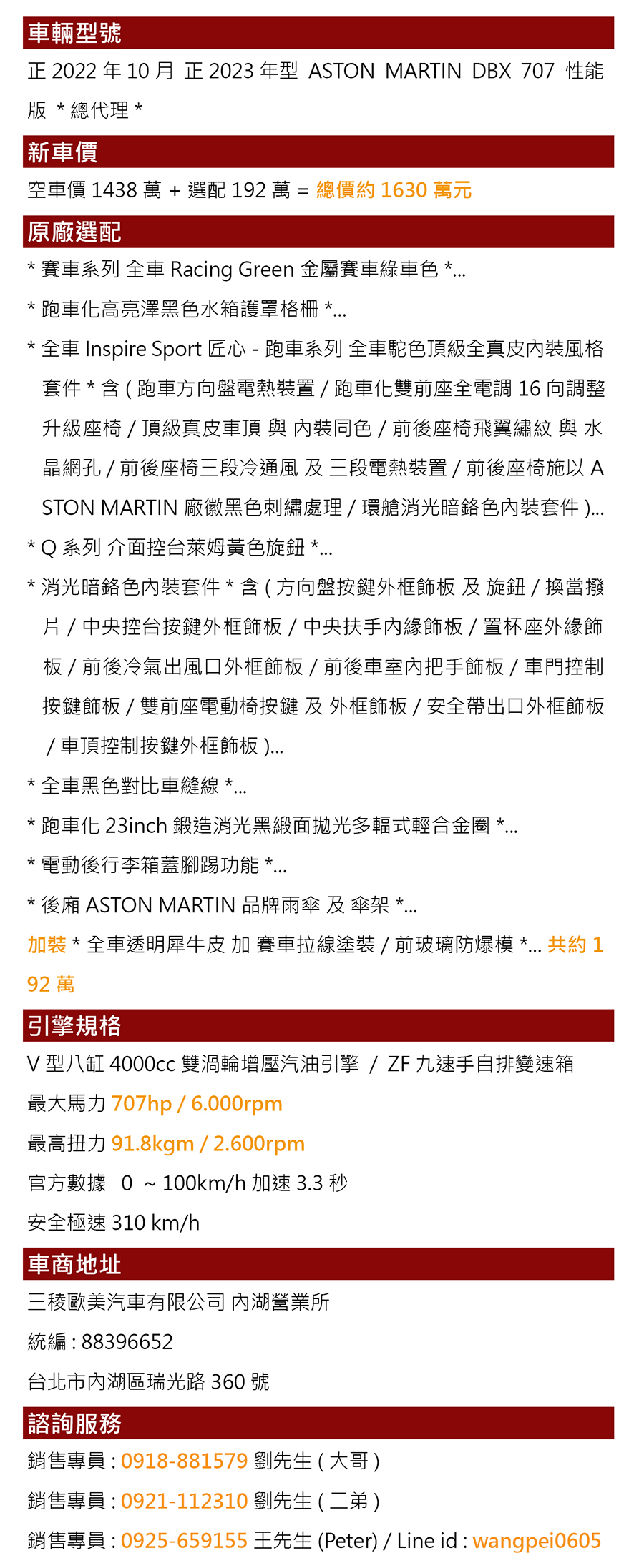 銷售專員:0918-881579 劉先生(大哥)