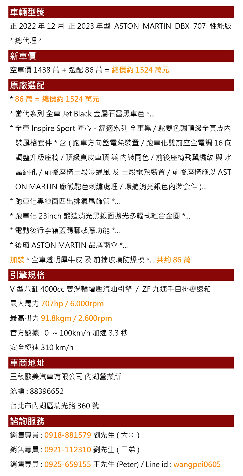 銷售專員:0921-112310 劉先生(二弟)