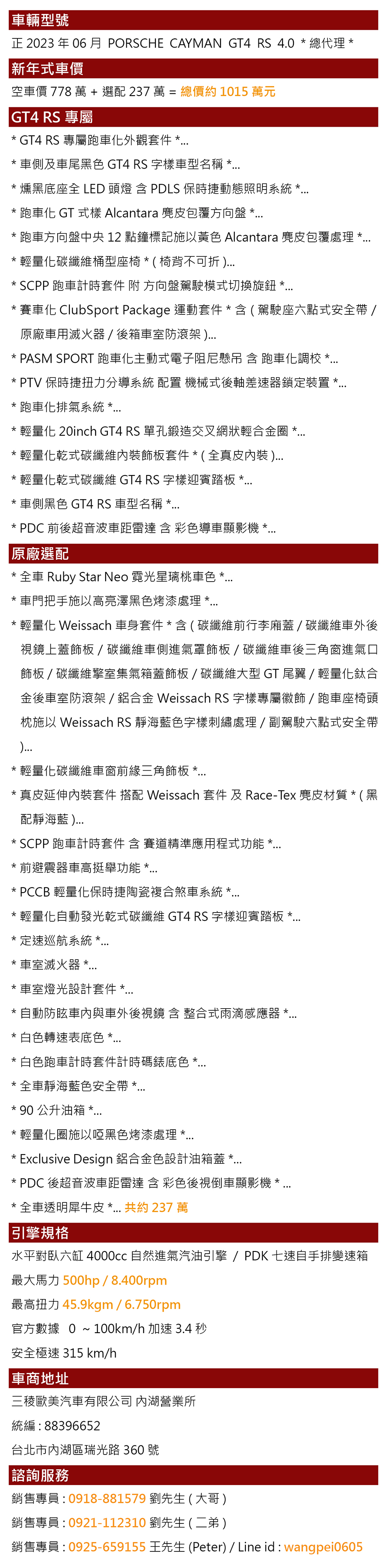 銷售專員:0918-881579 劉先生(大哥)
