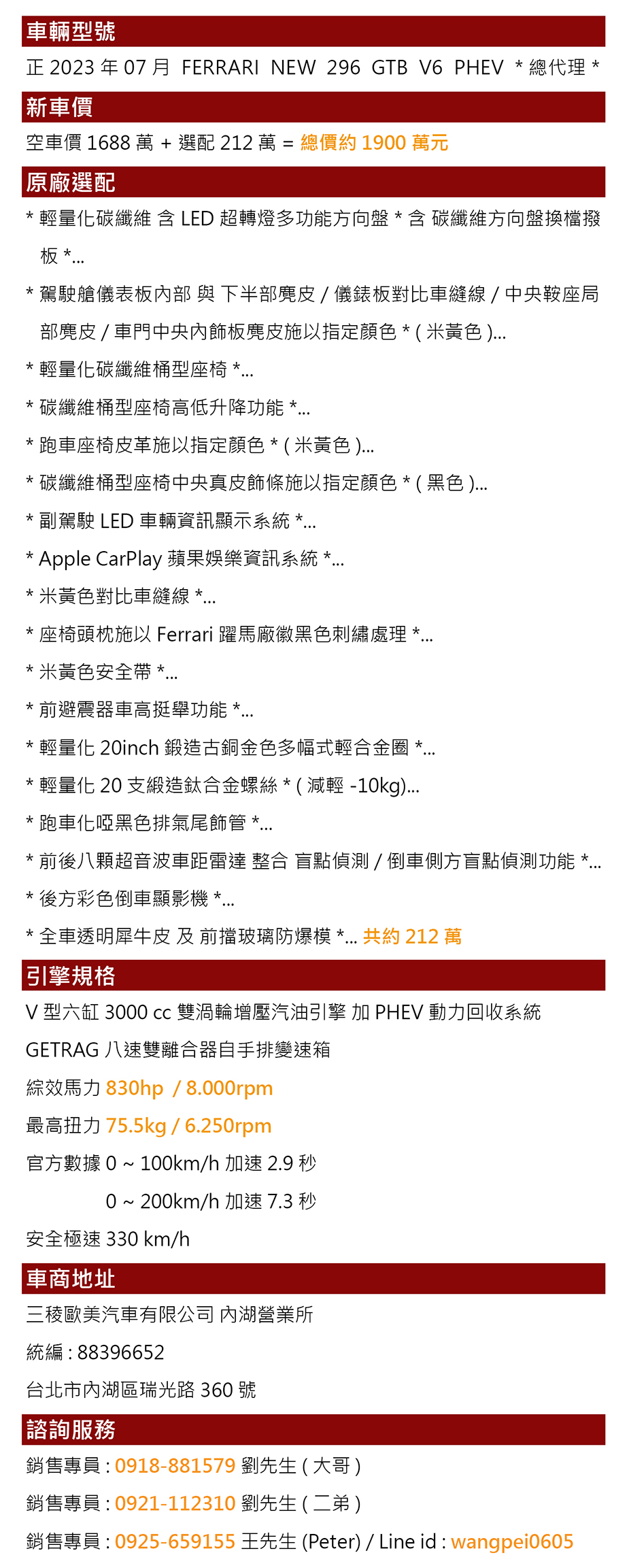 銷售專員:0918-881579 劉先生(大哥)