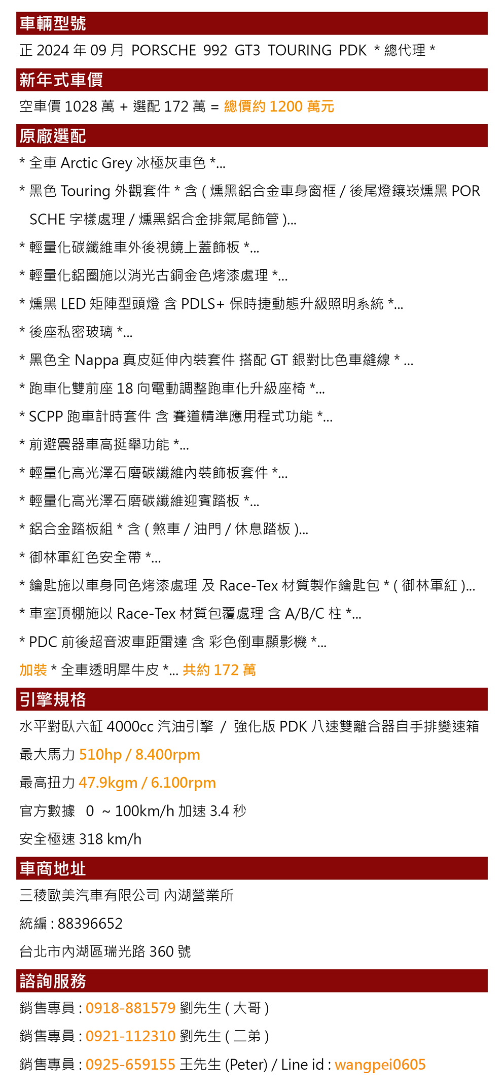 銷售專員:0918-881579 劉先生(大哥)