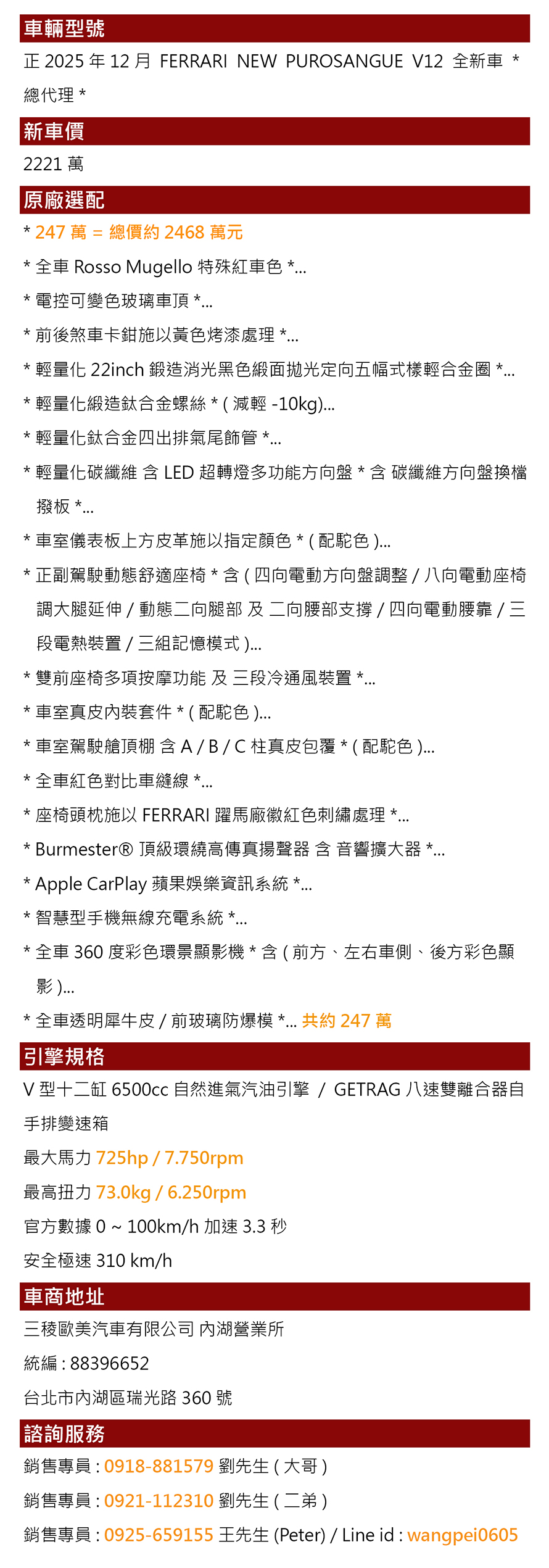 銷售專員:0925-659155 王先生(Peter)