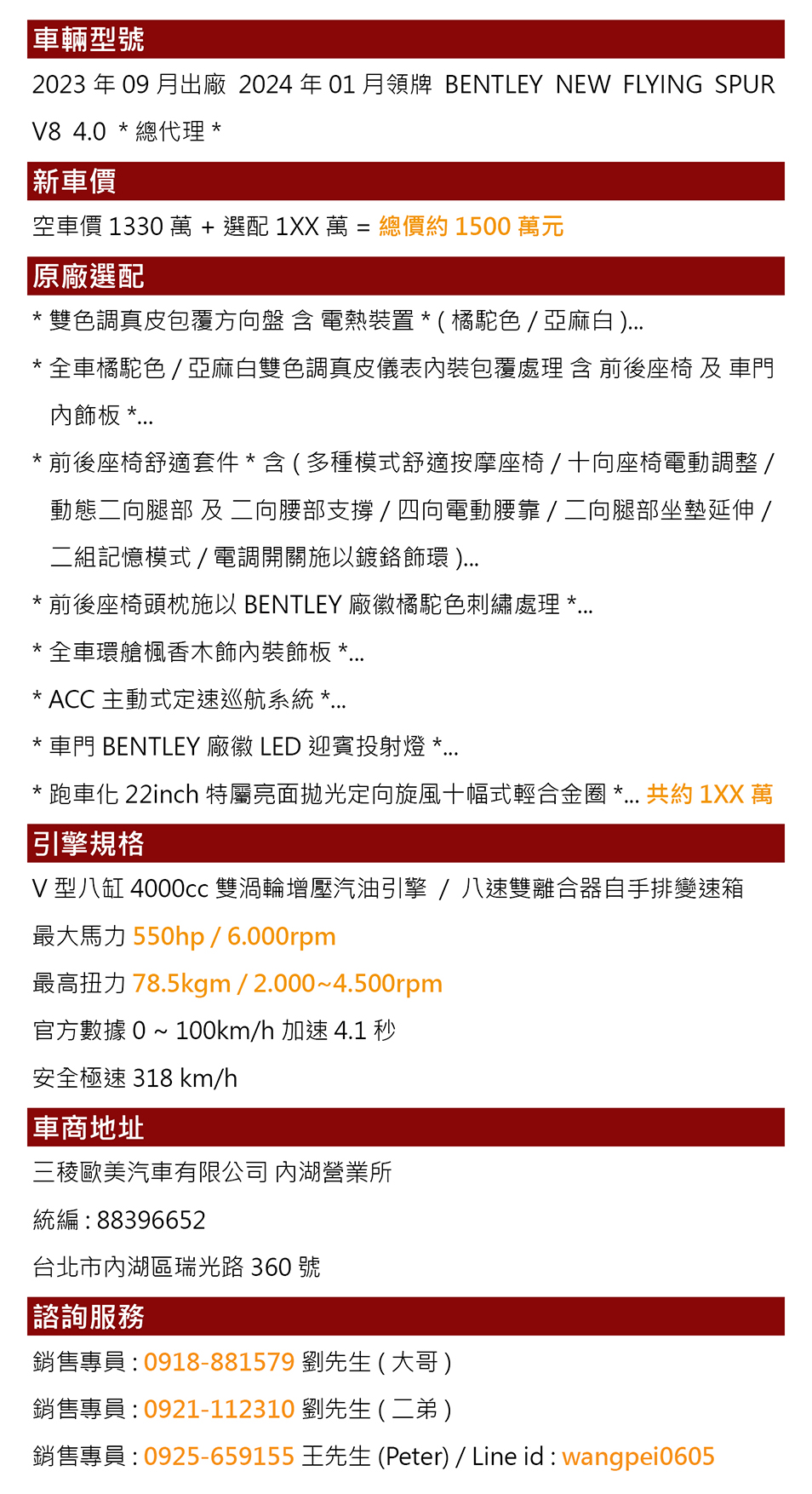 銷售專員:0918-881579 劉先生(大哥)